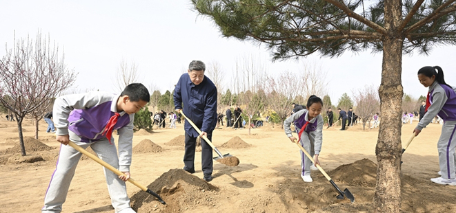 习近平在参加首都义务植树活动时强调 为山川大地增添...